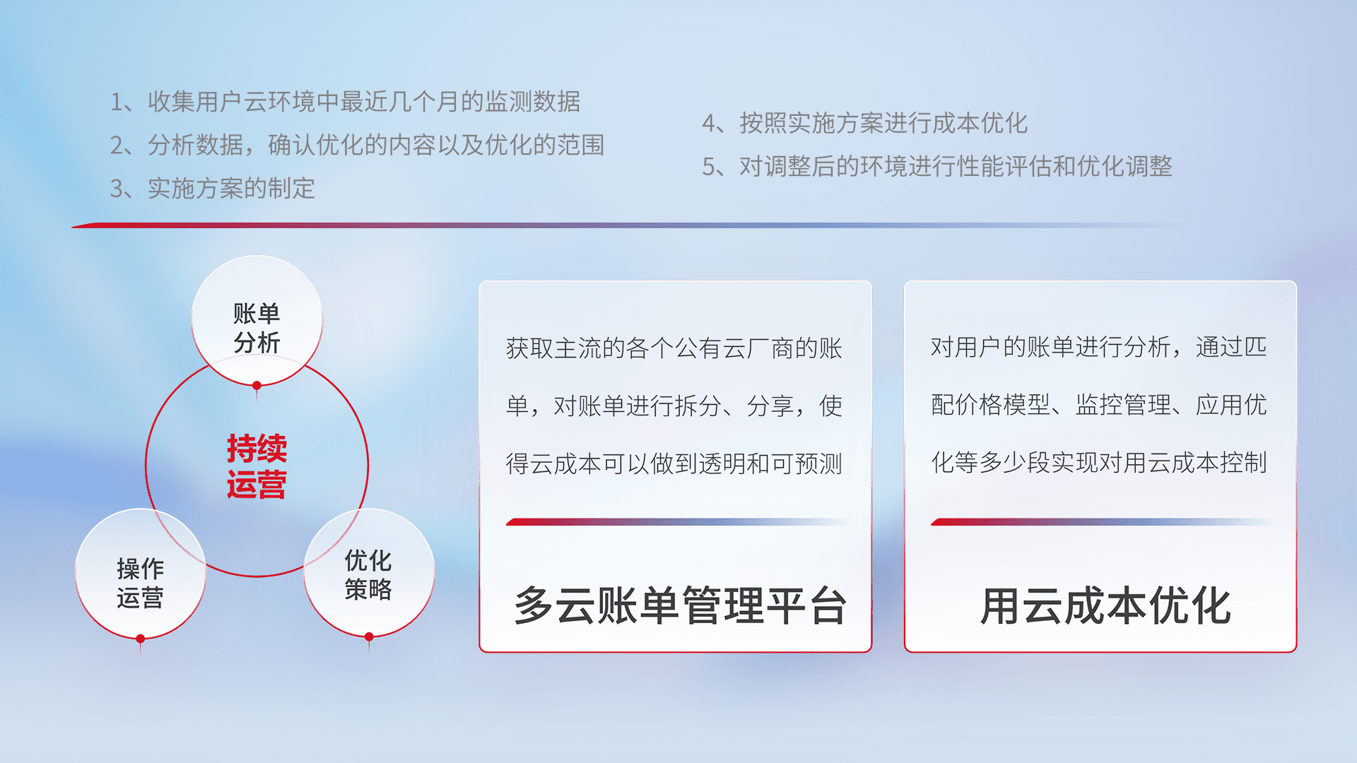 监控业务系统资源开销,,,对资源的消耗精确计量,,实现费用的透明化管理,,,不断提升资源使用率,,调整资源购买方式,,降低资源费用成本,,,,用云成本可预测、、用云费用可优化,,,云资源配额有据可依。。
